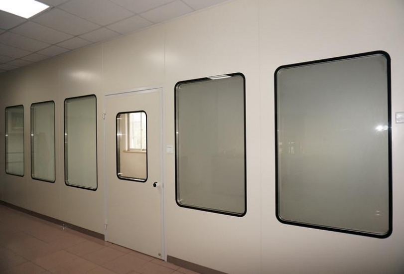 uses hermetically sealed sliding doors, to maintain satirically and the correct air pressure in the room, which requires less valuable space than hinged doors. The door can be operated manually or automatically with microprocessor based electronic automation system. The door frame is made out of high quality anodized aluminum extrusion and the door panel is made out of compact laminated board that can withstand high abrasions. The door will run on rubber rollers and guided with nylon runner guides which are fixed to the door in such a way that they do not obstruct trolley movement through the door. The controller will be capable of either being operated by elbow switches/ foot Switches, radar switch (touch less sensor). All doors will be able to be operated manually easily in the event of failure power supply or the automation .